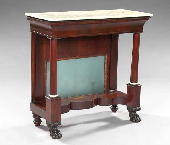 A Directoire Mahogany and Brass Inlaid Marble-Top Serving TableApr 23, 2026An Irish George II Carved Mahogany Dished Top Tea TableApr 28, 2026Ex Christie's Attributed John & Hugh Finlay Federalist Style Hand Painted Pier TableApr 21, 2026FRENCH EMPIRE MAHOGANY DEMILUNE MARBLE TOP CONSOLE TABLE WITH LYRE MOTIF AND GILT BRONZE MOUNTS.6 days LeftAmerican Late Classical Figured Mahogany Dressing ChestApr 17, 2026American Aesthetic Burl and Carved Walnut Library TableApr 17, 2026A George III Mahogany Cross Banded and Satinwood Inlaid Mahogany Center TableApr 25, 2026Federal Inlaid and Figured Mahogany, Birchwood and Rosewood Table5 days LeftAMERICAN EMPIRE MAHOGANY MARBLE TOP PIER TABLEApr 26, 2026AN EARLY 19TH CENTURY MAHOGANY CONSOLE TABLE WITH WHITE MARBLE TOP6 days LeftA Louis XV-Style Brass-Mounted Kingwood and Parquetry Lift-Top Games Table, David Zork Company,Apr 19, 2026FEDERAL SELECT CUBAN MAHOGANY DROP-LEAF TABLE New York, Circa 1820 Height 28.5". Width 36.25" plus8 hrs LeftClassical Mahogany Drop Leaf Table5 days LeftNEW YORK FEDERAL MAHOGANY AND MAHOGANY VENEER CARD TABLEApr 19, 2026Empire Marble-Top Center TableApr 25, 2026Chippendale Style Mahogany Occasional Table with Marble TopApr 20, 2026