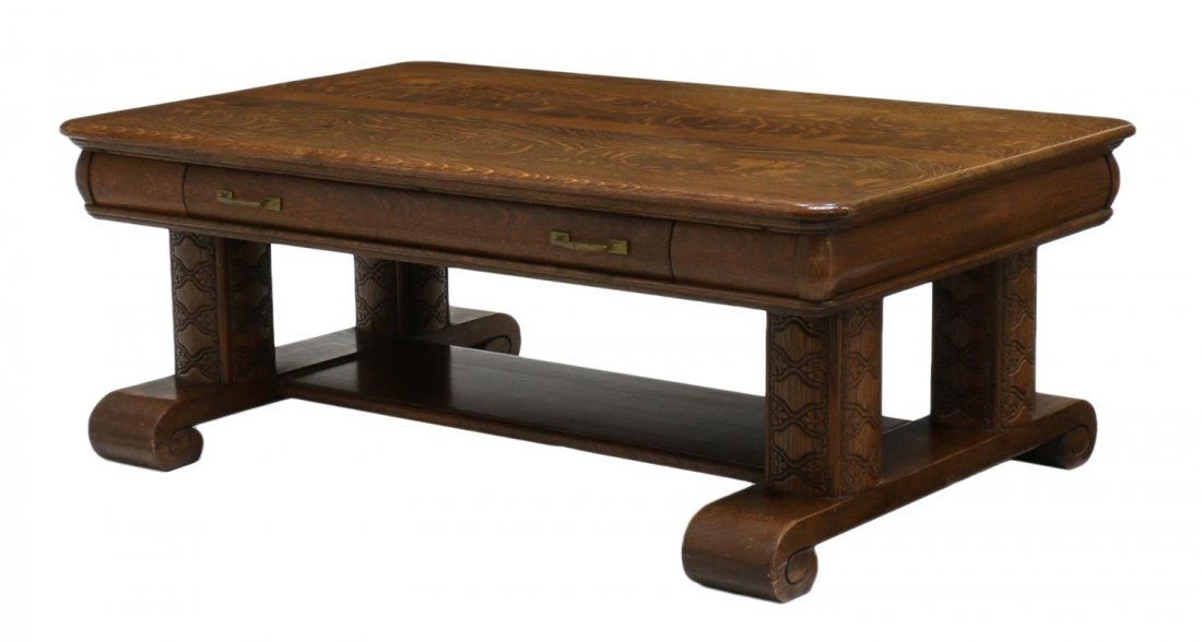 GERMAN OAK COFFEE TABLE C. 1970S5 days LeftFRENCH PROVINCIAL OAK FARMHOUSE DINING TABLE, 59"LFeb 21, 2026Antique Jacobean Dark Wood Coffee Table.6 hrs LeftR. J. Horner Style Antique Victorian Tiger Oak Writing Desk or Library Table, Circa 1890sFeb 17, 2026FRENCH OAK COFFEE TABLE C 1950 ENSUITE WITH PREVIOUS TWO LOTS.Feb 25, 2026Antique RJ Horner Carved Oak 2-Drawer Library Table C19101 day LeftVintage 1960s Rustic Coffee TableAntique Oak Library TableFeb 18, 2026Limbert Antique Mission Oak Arts & Crafts Turtle Top Writing Desk or Library Table, Newly RefinishedFeb 17, 2026Vintage Oak Coffee Table with Base Shelf for Living Room3 days LeftAmerican Arts and Crafts Oak Harvest TableMar 07, 2026Charles Limbert Attributed Vintage Mission Oak Desk C.1900-19105 days LeftStickley Brothers Antique Mission Oak Arts & Crafts Desk or Library Table, Circa 1900Feb 17, 2026FRENCH OAK COFFEE TABLE C 1960. ENSUITE WITH PREVIOUS TWO LOTS.Feb 24, 2026FRENCH OAK DINING TABLE WITH "BEE HIVE" SUPPORTS BY CHARLES DUDOUYT HAVING TWO DRAW LEAVES C 1940.Feb 24, 2026RENAISSANCE STYLE CARVED WOOD 2-DRAWER WRITING TABLE / DESKFeb 22, 2026