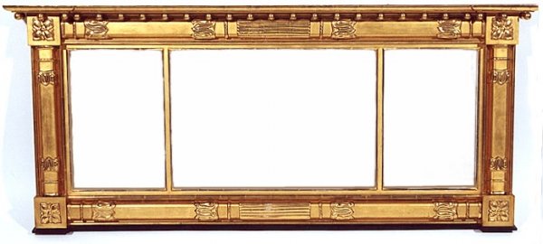 AMERICAN OVERMANTLE MIRROR, three rectangular pane
