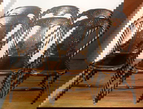 AMERICAN PAINTED PINE SIDE CHAIRS, C. 1870, SET O