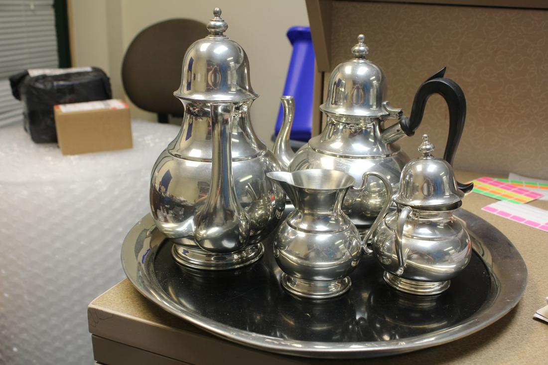 9 pc Lot Silverplate & Sterling3 days LeftLot of 7 Pewter/Silverplate ArticlesMar 08, 2026Wallace Baroque Plus 5 PC Silver Plate Tea Serving Set5 days LeftLot of Silver Plate Table Items & Casserole StandMar 05, 2026Silverplate Tea Service with Extra TrayMar 06, 2026Vintage 5-Piece Pewter Tea & Coffee Service Set with Serving Tray - Model RN 63721Mar 28, 20265 Pc Silverplated Tea Set7 days LeftFour Piece Silverplated Sheffield English Teaset With1 day LeftVintage German .835 Silver Coffee and Tea Service SetJul 13, 2025Collection Of Vintage Silver Plated Serving, Dining, Tea Service Items 10"X 15"Mar 08, 2026Vict./ Edward VII Silverplate Tea Service & a TrayMar 13, 202619th Century French 5-Piece 950 Sterling Silver Tea Set with Tray6 days LeftFive-Piece Silverplate Tea and Coffee Service in the “King Francis" Pattern with TrayMar 07, 2026Antique Silver Plated Serving Dishes (Largest 8"X7")Mar 08, 20265 Pc Pewter Tea Service with TrayMar 06, 202613 Pcs SilverplateMar 06, 2026