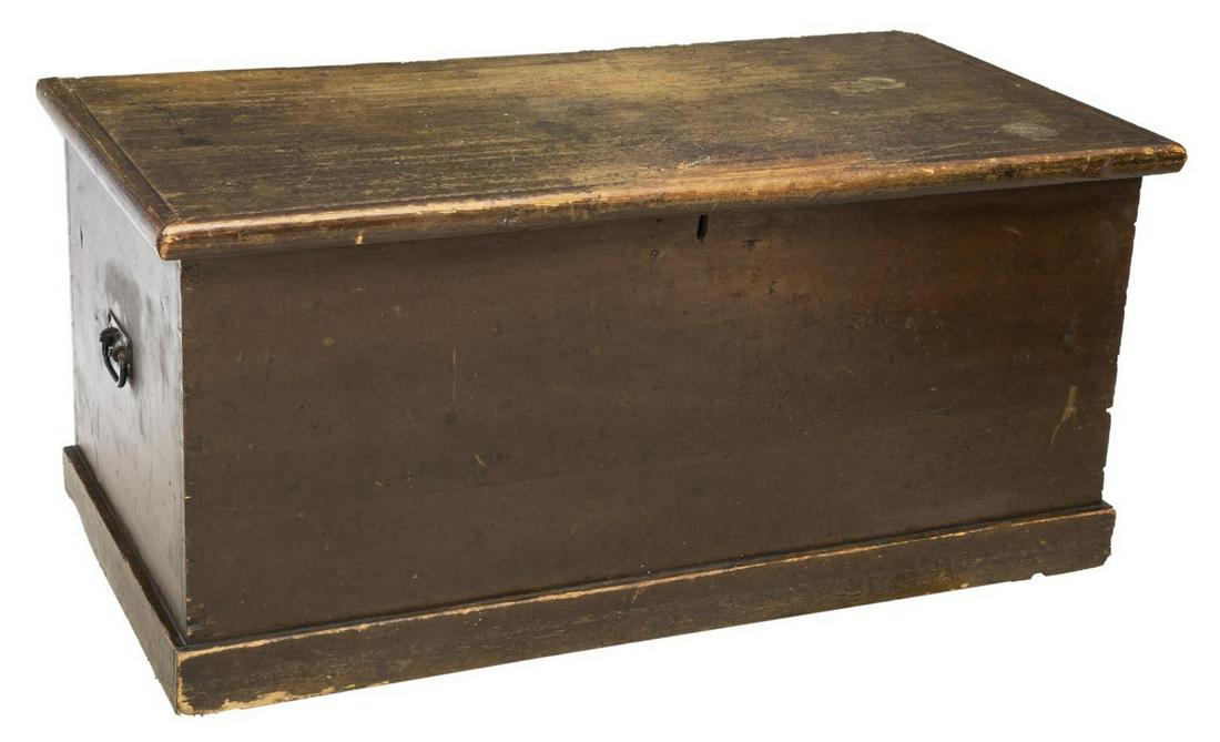 SoldAmerican Primitive stained pine blanket chestAmerican Primitive stained pine blanket chest, 19th c., nice exterior dovetailing, 17.25"h x 45"w x 18.25"d Provenance: A Private Collection: Princeton, NJSee Sold Price