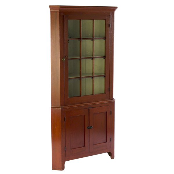 American red wash corner cabinet