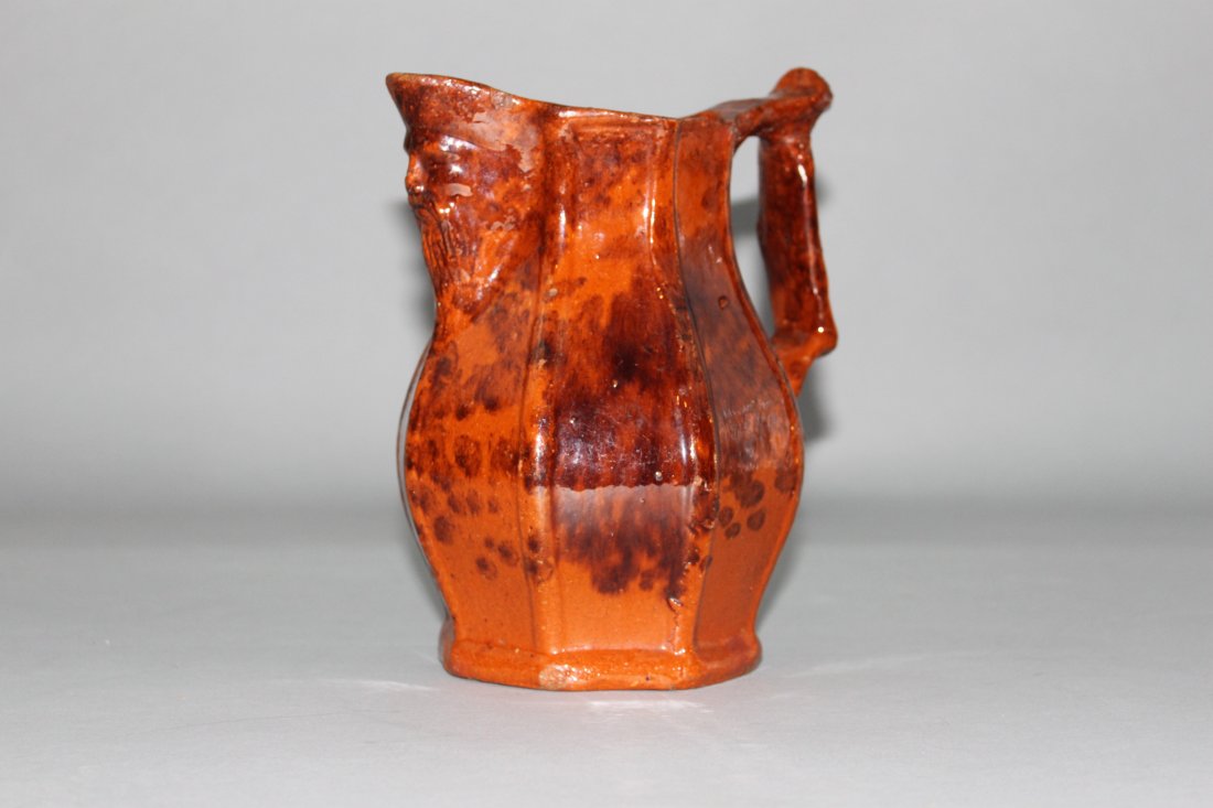 American Redware Pitcher with Figural Spout