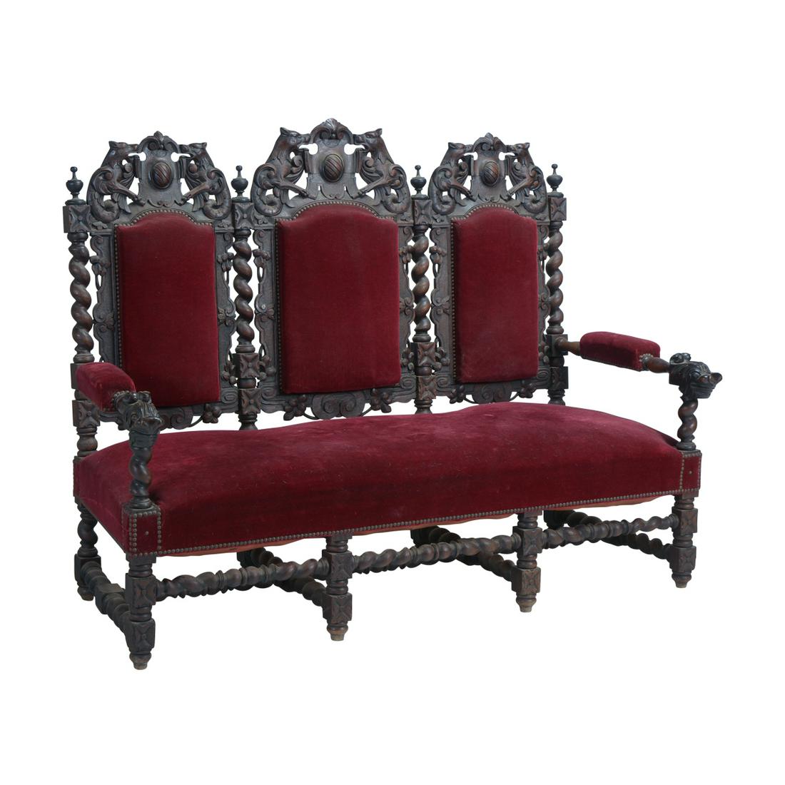 American Renaissance Carved Oak Sofa.