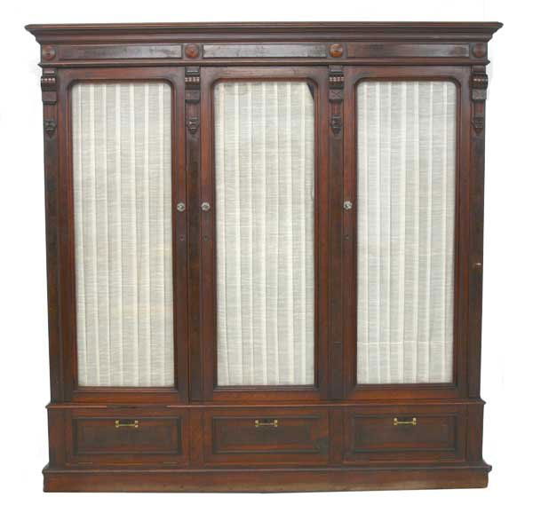 American Renaissance Walnut Three Door Bookcase wit