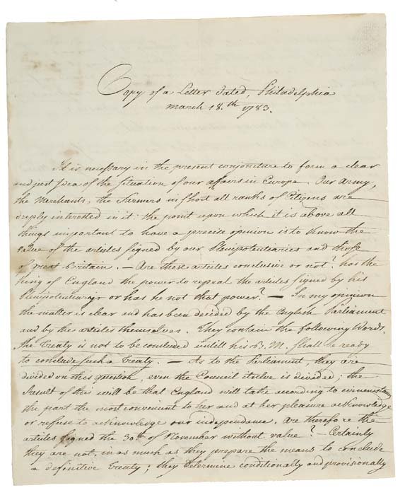 (AMERICAN REVOLUTION.) Manuscript, unsigned an