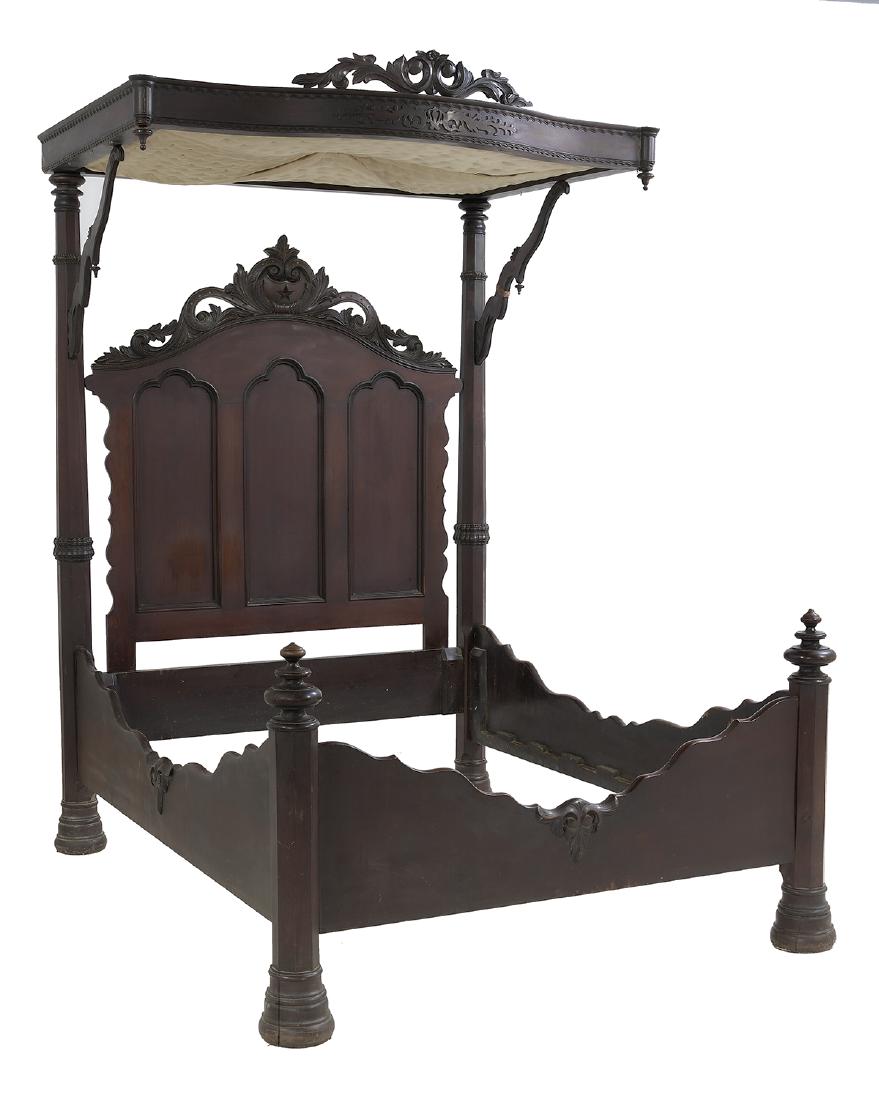 American Rococo Revival Walnut Half-Tester Bed