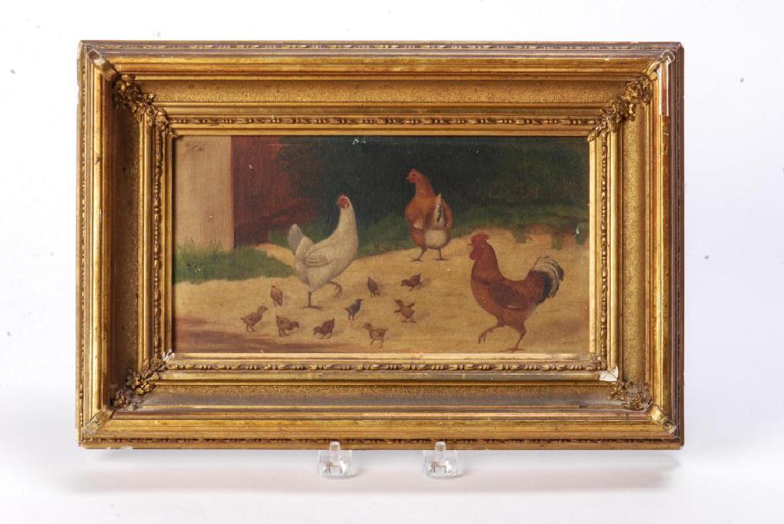 AMERICAN SCHOOL (19th c) FEEDING CHICKS