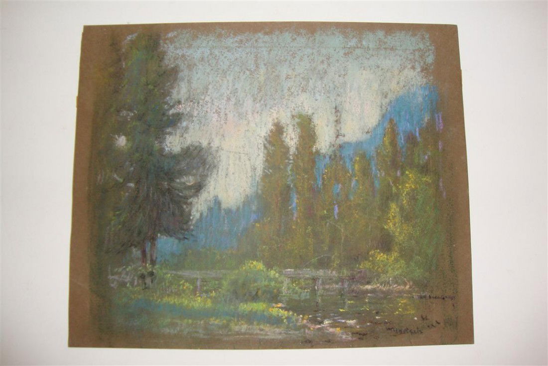 AMERICAN SCHOOL; PASTEL LANDSCAPE SIGNED