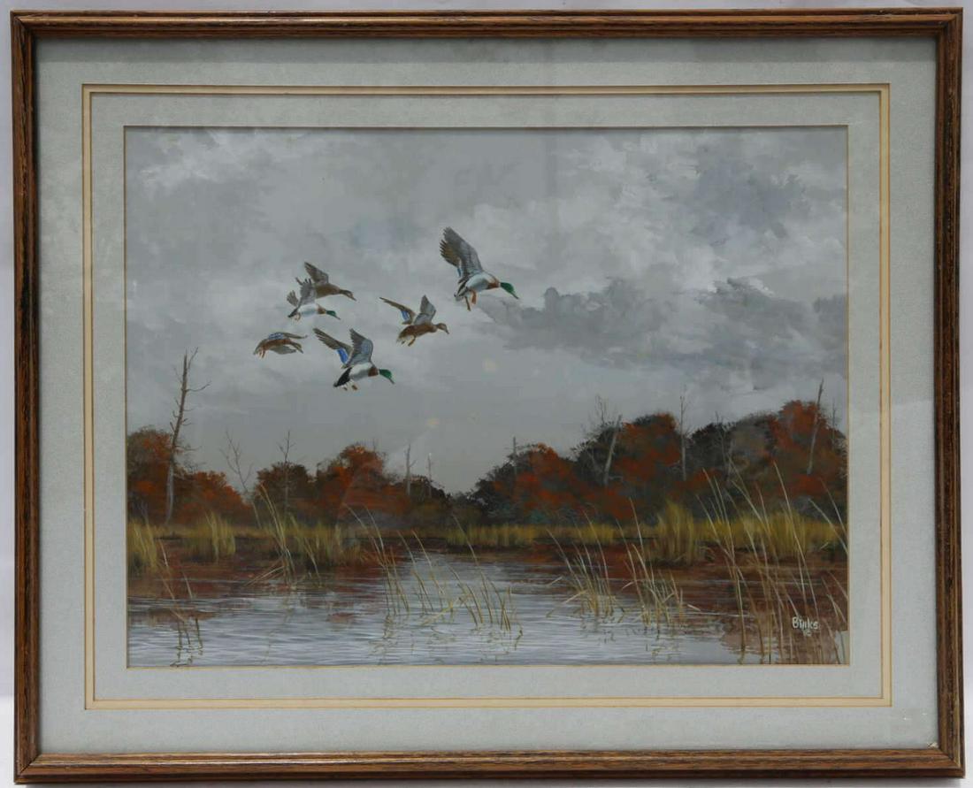 AMERICAN SIGNED MALLARDS IN FLIGHT WORK ON PAPER