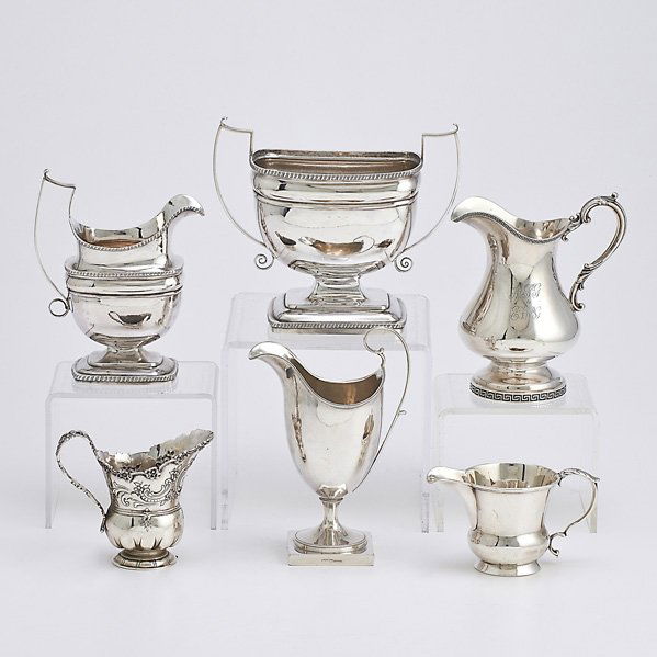 Silver Plated Tea Service Grouping (6)Mar 07, 20264 Sterling Miniature VesselsMar 14, 2026Sterling Tea Set2 days LeftAssembled Baltimore Sterling Silver Tea SetFeb 27, 2026Y A VICTORIAN SILVER FOUR PIECE TEA SET8 hrs LeftThomas Warner (Baltimore) American Silver Three-Piece Tea Service, c. 1810-1830Mar 08, 2026(4) STERLING SILVER WEIGHTED BASE CREAMERS,SUGARS6 days LeftGorham Plymouth sterling silver partial tea/coffee service, 3pc: lidded sugar bowl, creamer, waste5 days LeftVintage Silver Plate Tableware CollectionMar 05, 2026American coin silver pitcher & sauce boat2 days Left(5) Chinese silver trophies, early 20th c.3 days LeftAmerican Aesthetic Silver-Plate Four Piece Coffee Service, late 19th c., Coffee- H.- 12 1/4 in., W.-Feb 27, 2026A group of silver plated coffee pots and a sterling silver pitcherMar 03, 2026Frank W. Smith "Georgian" sterling tea service.Feb 24, 2026Collection Various Sterling Silver Weighted Tables WaresFeb 28, 20263 pcs Vintage Silver Plate Tea Pots, incl. 2x Silver on Copper Pieces. Very Good Condition.