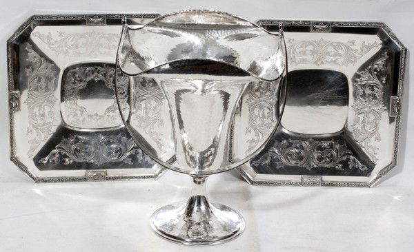Lot 2 Sheffield+ Serving Platters USA1 day LeftLot 4 Silver Plated Creamer, Footed Bwl & PlateMar 04, 2026GORHAM AND OTHER STERLING SILVER TABLE ARTICLES, LOT OF THREEMar 04, 2026THREE CAKE PLATE STANDS: CAMBRIDGE (ATTR.) & MORE3 days LeftLarge Vintage English Silver Plated Salver by CavalierSix English & American Silver Table ArticlesMar 13, 2026Five-Piece Silverplate Serving GroupMar 07, 2026Large Silver Plate Punch Bowl Set with Twelve Cups, Ladle, and TrayMar 07, 2026Set of Two Sterling Silver Goblet and Tray with Scrollwork DecorationMar 03, 2026Silverplated Serving TrayMar 04, 2026Five-Piece Silverplate Tea and Coffee Service with Large Serving TrayMar 07, 2026James Dixon & Sons Silver Plate Coffee Service, 5Mar 07, 2026Georg Jensen Sterling Silver Bowl No. 7752 days LeftMottahedeh Winterthur Adaptation Style Silverplate Montieth/Punch BowlMar 17, 2026George III Sterling Silver SalverMar 16, 2026Paul STORR - GEORGE III - DINNER SILVER PLATE, 1812Mar 21, 2026