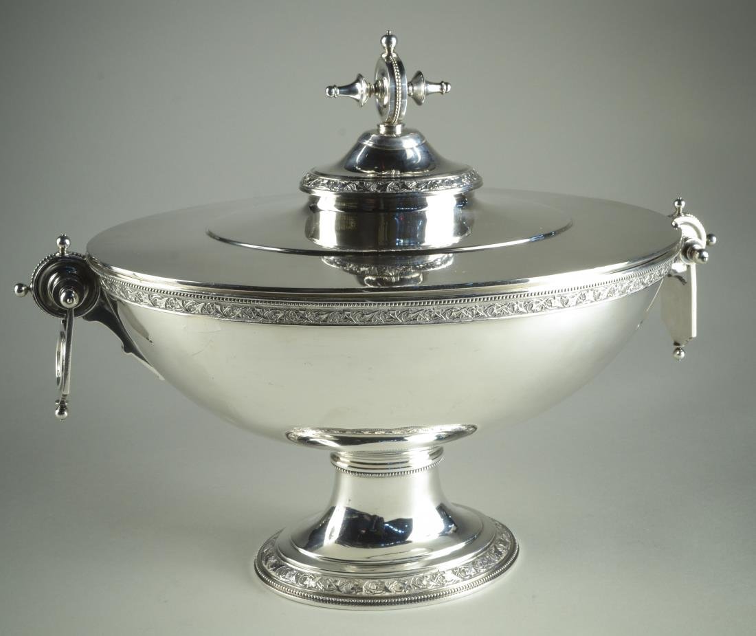 Excellent English George III Old Sheffield Silver Plate Serving PiecesFeb 28, 2026Antique 1892 Gorham 925 Sterling Silver Monogrammed TureenFeb 17, 2026An antique French covered silver tureen with handles and underplate6 days LeftChristofle Albi Silverplate Soup Tureen with Lid 14.25x10.625x9Feb 28, 2026Gorham Sterling Silver Covered Vegetable Tureen3 days LeftGorham Medallion Sterling Silver Sugar Bowl Barrel Shape 1871Mar 01, 2026GEORGE JENSEN STERLING SILVER LIDDED COMPOTE4 days LeftQueen Anne English Silver Lidded Sugar Bowl, Britannia Standard, William Fleming6 days LeftFrench Art Deco Sterling Silver Tetard Freres Tureen Set with Monogram2 days LeftAntique circa 1900 Art Nouveau KAYSERZINN Pewter Tureen1 day LeftMexican Sterling Silver Covered Tureen with Ladle by SanbornsMar 08, 2026French Art Deco Sterling Silver Tetard Freres Tureen Set with Monogram23 hrs LeftTiffany & Co. Antique Silver Pedestal Fruit Bowl or Center Bowl21 hrs LeftBritish Silver Luster Earthenware Teapot C. 1820s4 days LeftAntique Georgian English Pewter Centerpiece or Punch BowlFeb 28, 2026Victorian Silver Plate Tobacco Jar, ca. 1850Mar 12, 2026