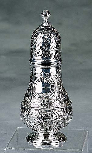 Antique 19thC Jones, Ball & Poor American Pure Coin Silver Boston Ewer w/Chased DesignMar 29, 2026George II Sterling Silver Sugar CasterMar 16, 2026English sterling silver tall muffineer. Repousse floral decorated body. Armorial crest with2 days LeftGeorge II Silver Sugar Caster London 1755 Samuel WoodEdward VII Arts & Crafts Sterling Silver Sugar CasterMar 16, 2026A GEORGE II SILVER SUGAR CASTER4 days LeftAn American Silver Coffee Pot, John David, Philadelphia, Circa 1770Mar 19, 2026George III Sterling Silver Coffee PotMar 16, 202618th century American colonial silver shaker-muffineer. W.H. maker's marks. Marked twice on cover2 days LeftOttoman Empire Silver Spice Container, 19th C.Mar 19, 2026Tiffany & Co. Makers sterling silver muffineer, early 20th century. Relief spiral gadrooning and2 days LeftGelston Treadwell Coin Silver Sugar Bowl Japanesque Motifs 1850-18994 hrs LeftA large Victorian silver ewer Maker's mark mis-struck, possibly Alexander Crichton, London, 1881Whiskey Bottle, Solid Sterling Silver, Marked Shiebler & Co, Model #2251Mar 21, 2026AN INDIAN SILVER ROSEWATER SPRINKLER GULAB PASH, 19TH CENTURYMar 06, 2026George III Silver and Glass Inkwell, Paul StorrMar 14, 2026