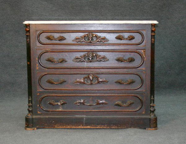 SoldAmerican Victorian Marble Top Chest / CommodeMatching low chest or oversized commode to lot 66. Note: 2 small filled holes on marble top. Measuring approx 33" wide x 17" deep x 29" tall, see photos for details.See Sold Price