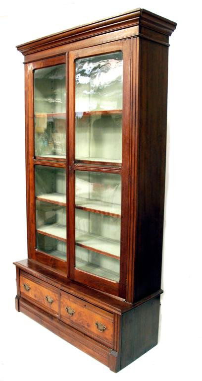 AMERICAN VICTORIAN DOUBLE DOOR WALNUT BOOKCASE