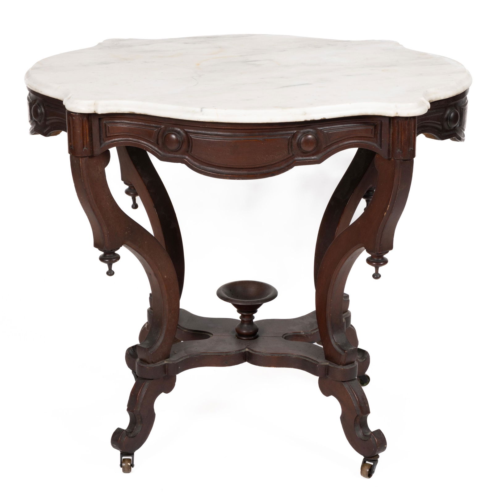 AMERICAN VICTORIAN MARBLE-TOP CENTER TABLE