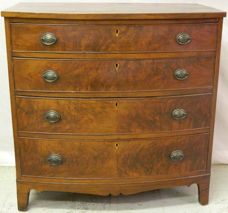 American walnut bowfront four drawer chest.