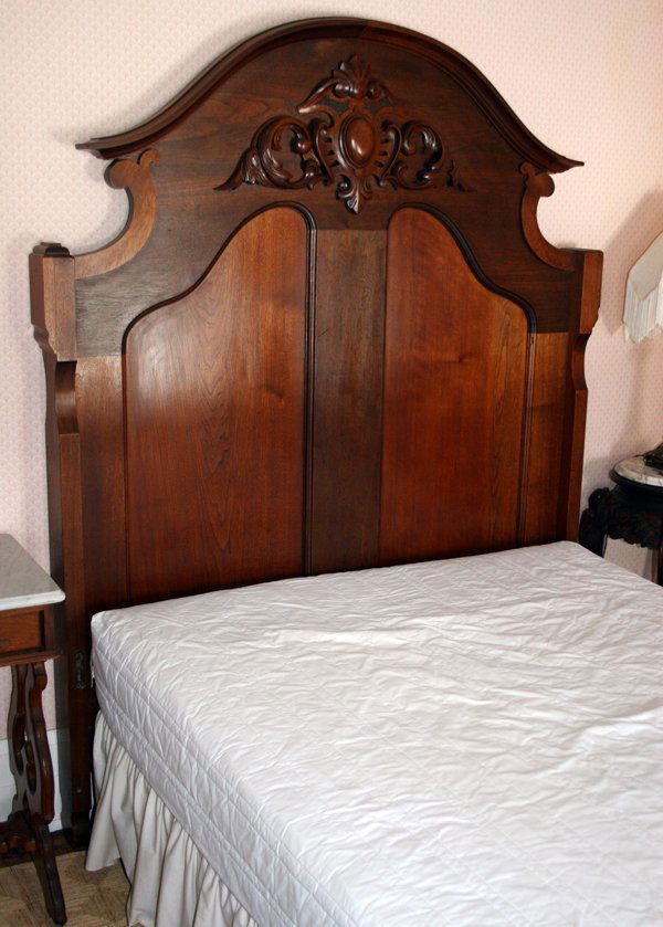 AMERICAN WALNUT HIGH BACK BED, 19TH C, H 75"