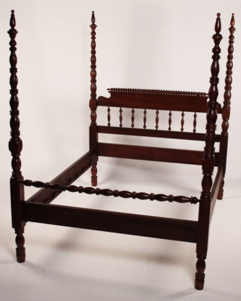 SoldAmerican Late Classical Walnut Tall-Post BedAmerican Late Classical Walnut Tall-Post Bed second quarter 19th century, the segmented turned and octagonal posts supporting a headboard with a faceted "blanket roll" crest with acorn-form finials; wSee Sold Price