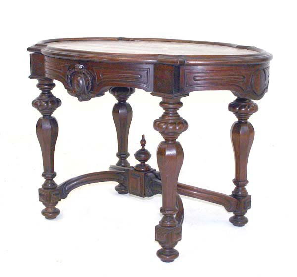 American Walnut Renaissance Marble Top Parlor Table