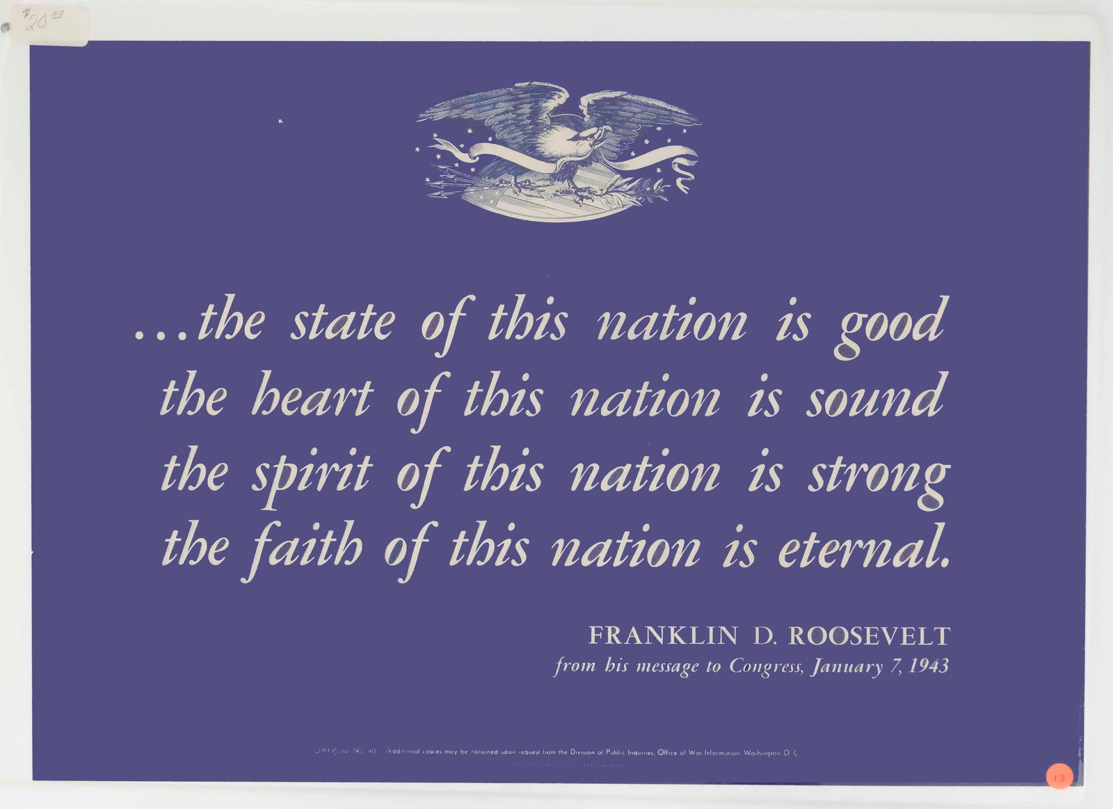 U.S. Army At Home Abroad - Art By Tom Woodburn (1940's) 25x38 US WWII PosterA Message About Food From the President of the United States (1945 Poster)Mar 17, 2026The United Nations Fight For Freedom (1942 WWII Propaganda Poster)Mar 17, 2026Americanism Is Not a Matter of Race or Ancestry (OWI Poster No. 75), 442nd Regimental Combat TeamMar 17, 2026Franklin D. Roosevelt Signed 9.5x11 Photo Inscribed to Dan JSA Certified845 Lots Away1941 U.S. Navy Recruitment Poster 'MEN Wanted! National Security'Mar 17, 2026"The United States Navy needs young patriotic Americans" Recruitment Poster by Matt MurpheyMar 17, 2026"America's Answer" World War I Propaganda Film PosterMar 17, 2026America Calling / Take your place in Civilian Defense PosterMar 17, 2026WWI 2nd Liberty Loan 'Conquer or Submit' Poster (Woodrow Wilson)Mar 17, 2026Winston Churchill 'Come Then Let Us To The Task' WWII PosterMar 17, 2026"The Father of Our Country Appealed for Soldiers" WWI Recruitment PosterMar 17, 2026"Let's Get 'Em!" U.S. Coast Guard Recruitment PosterMar 17, 2026"The 2nd War Loan Is On!" WWII Propaganda PosterMar 17, 20261942 WWII "This World Cannot Exist Half Slave And Half Free" Abraham Lincoln War Bonds PosterMar 17, 2026WWII 'Share Your Car' Billboard Proof PosterMar 17, 2026