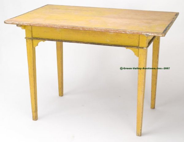 AMERICAN YELLOW-PAINTED PINE WORK STAND, two-boar