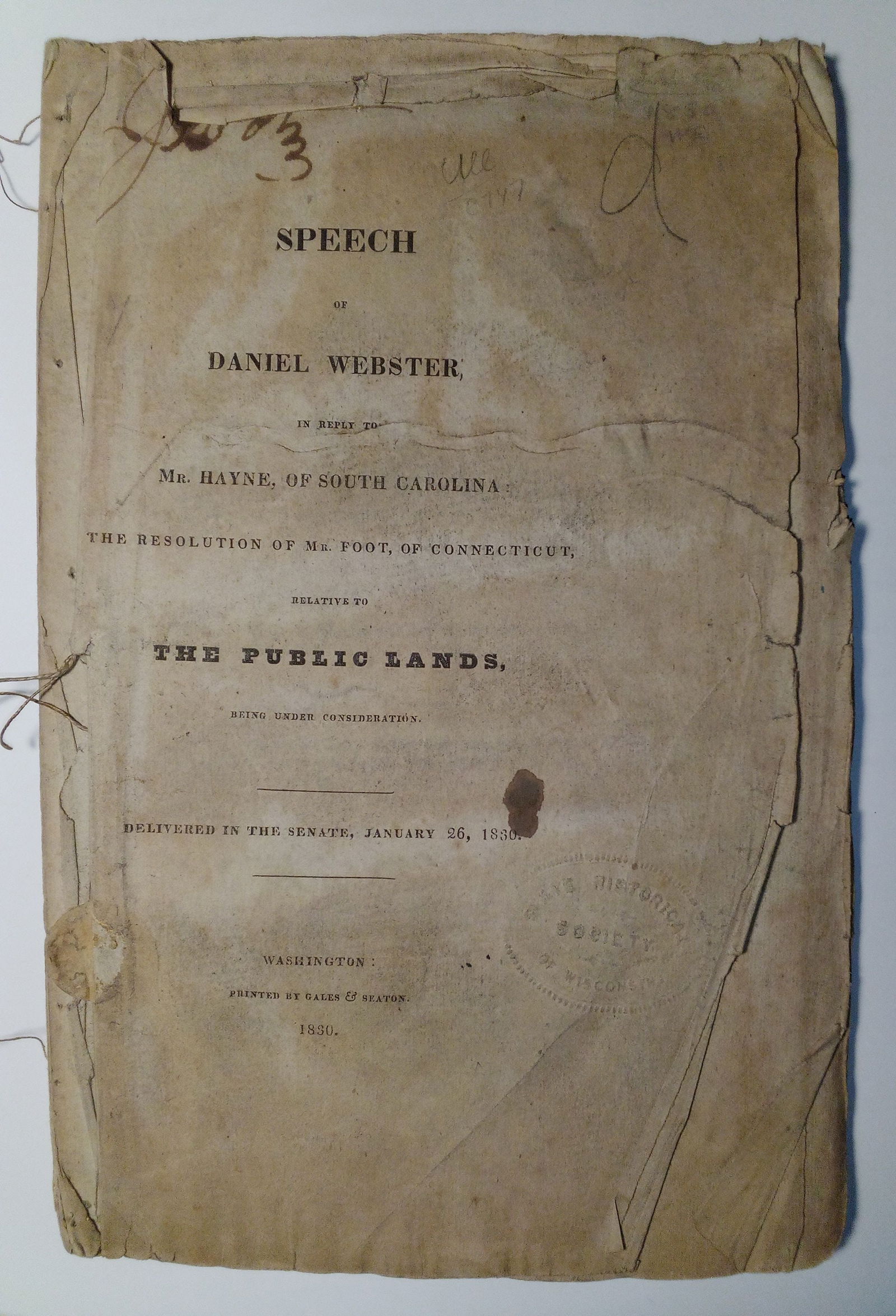 Americana 1830 Daniel Webster ORIGINAL Speech Pamphlet