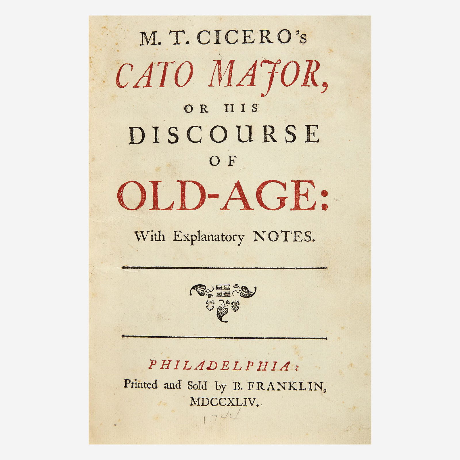 [Americana] [Franklin, Benjamin] Cicero, M(arcus).