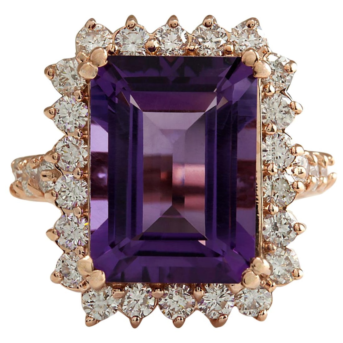 14k Rose Gold 5.50ct Amethyst 1.50ct Diamond Ring