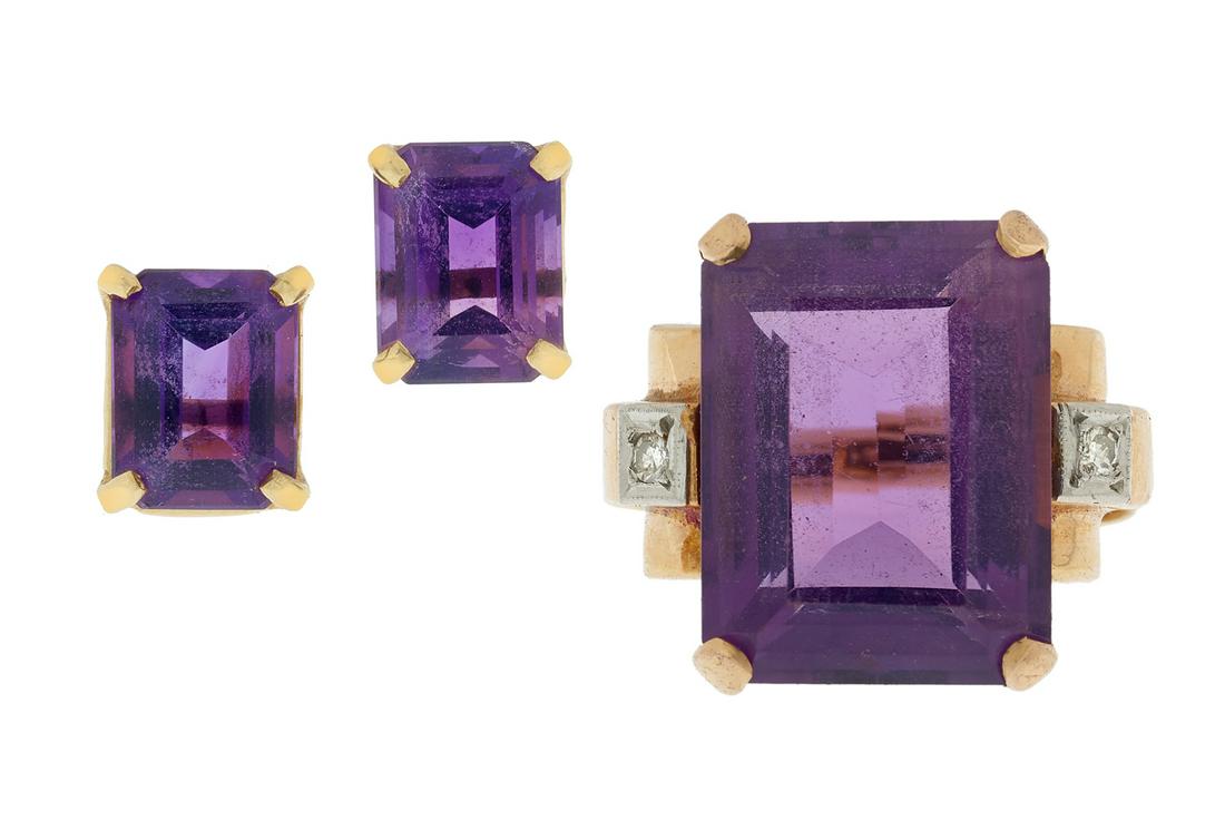 Amethyst and Diamond Ring and Earrings