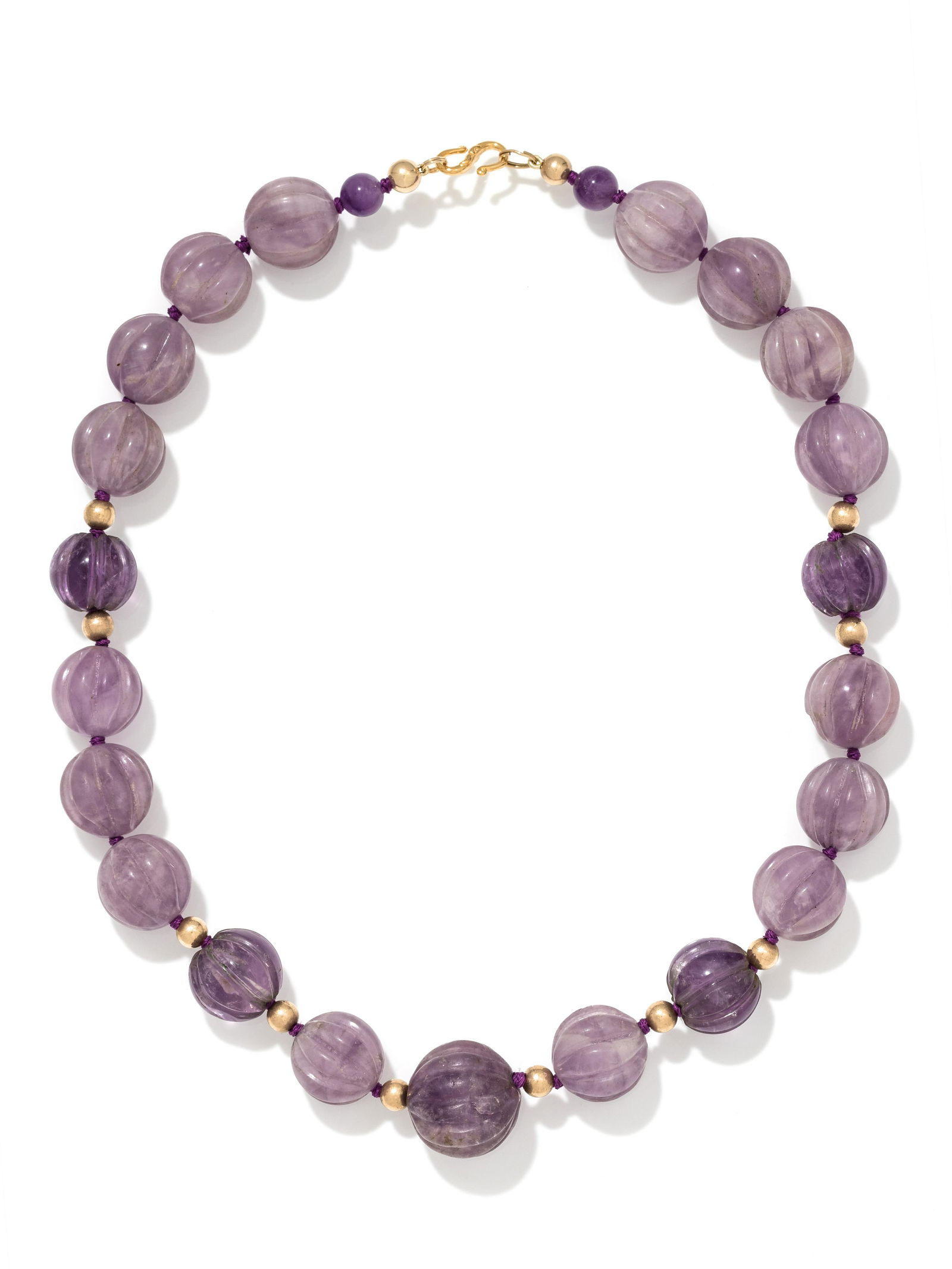 SoldAn amethyst bead necklace, retailed by H. Stern,An amethyst bead necklace, retailed by H. Stern designed an a strand of forty-five graduated amethyst beads, measuring approximately 8.50mm to 11.70mm.62.5 gs.; Length: 20 in. provenance: From the EstSee Sold Price