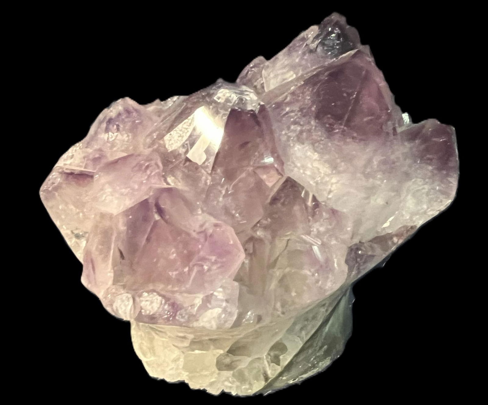 SoldVintage Carved Amethyst Guan YinDESCRIPTION: Vintage carved amethyst Guan Yin, holding a mirror and a bouquet of lilies. On carved wooden footed base. CIRCA: 20th Century ORIGIN: China DIMENSIONS: H: 9.5" W: 3.5" L: 3" CONDITION: ChSee Sold Price