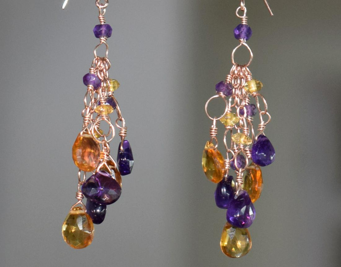 AMETHYST , CITRINE EARRING W/ STERLING SILVER