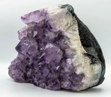 SoldLarge Amethyst Crystal Cluster on Rock BaseAmethyst Cluster (Purples/Violets): Images like the one with large, faceted purple crystals. 20"H x 25"W x 10"D.See Sold Price