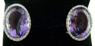 14k Gold 11ct Amethyst 2.10ct Diamond Earrings