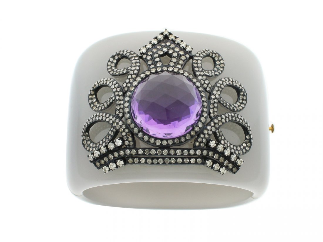 AMETHYST DIAMOND BAKELITE BANGLE CUFF