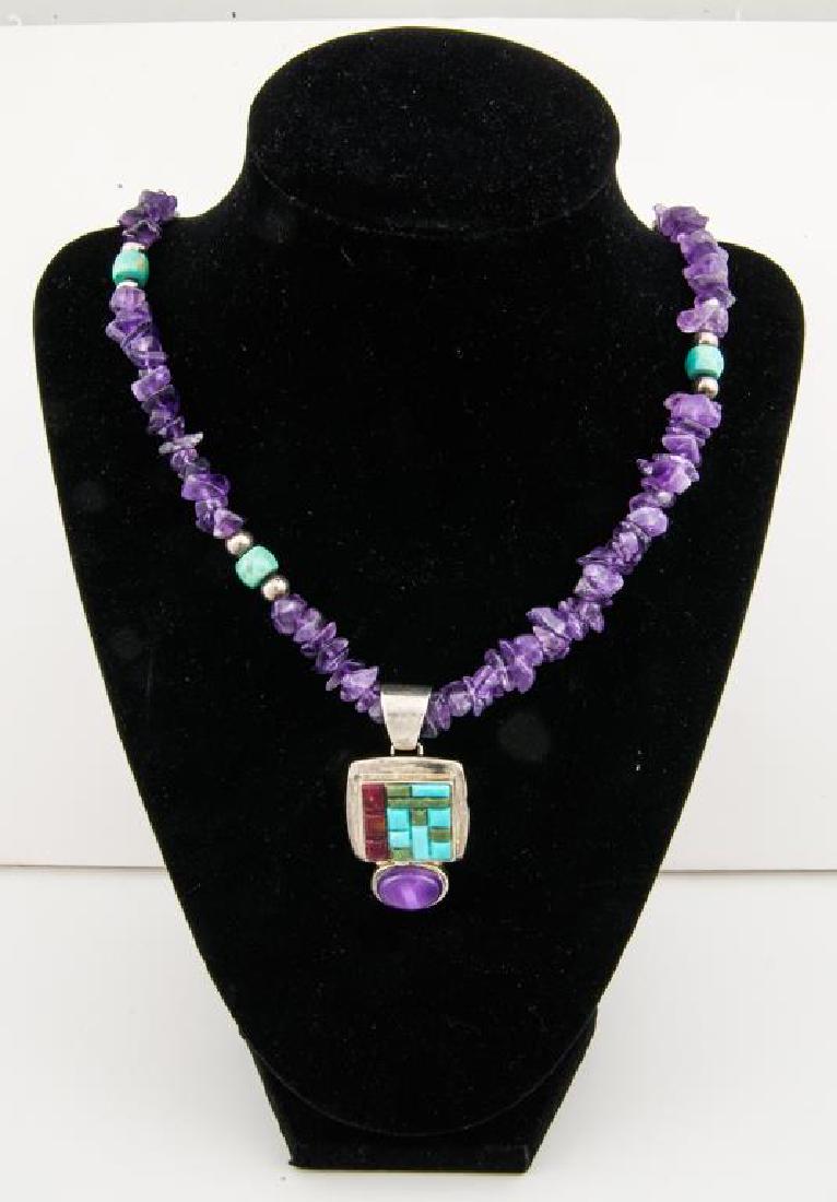 Sterling Silver Amethyst Pendant with Glass Amethyst Garnet Bead NecklaceChairish Auctions4.5(10.3k)$170