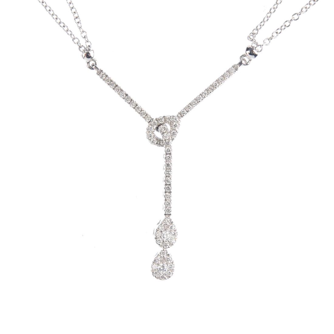 A PEARL AND DIAMOND NECKLACE in 18ct white gold, comprising a single row of graduated pearls rangingA PEARL AND DIAMOND NECKLACE in 18ct white gold, comprising a single row of graduated pearls ranging from 2.3mm to 6.5mm, the clasp set set with a pearl in a cluster of round brilliant cut diamonds, M