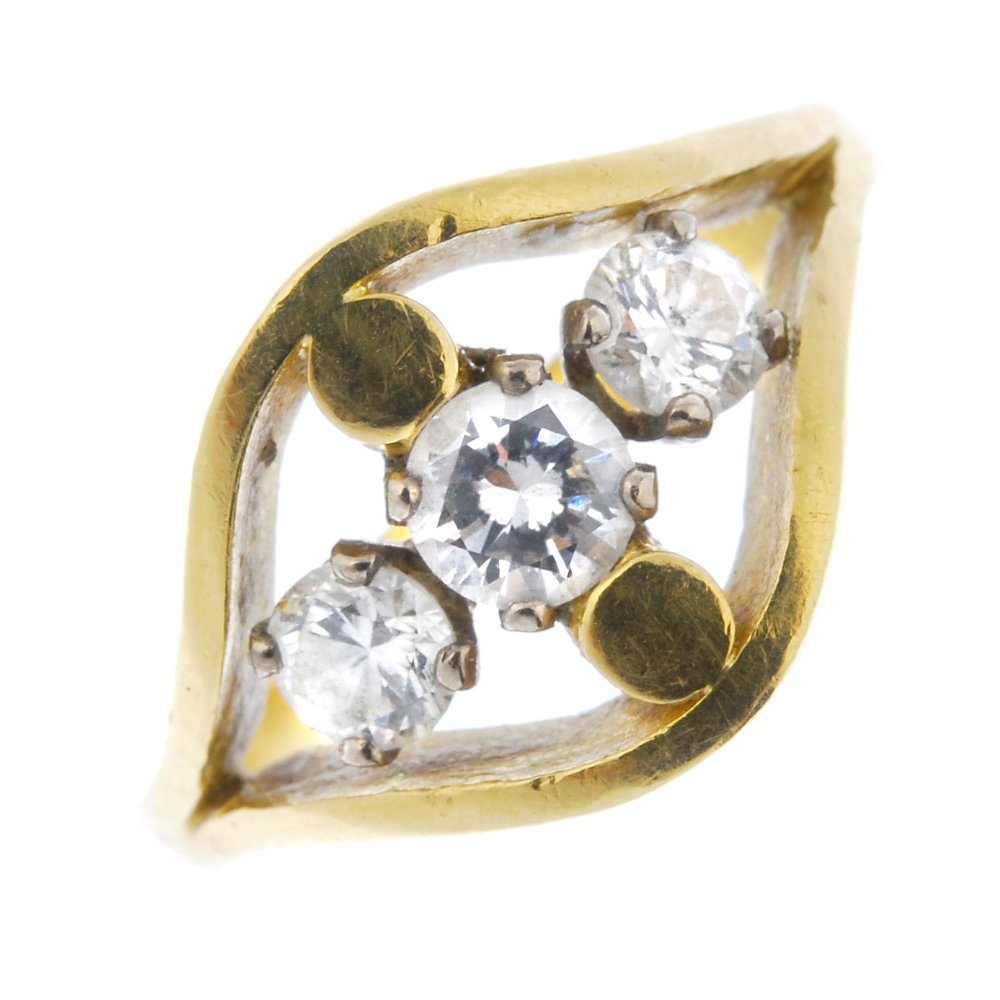 An 18ct diamond three-stone dress ring.