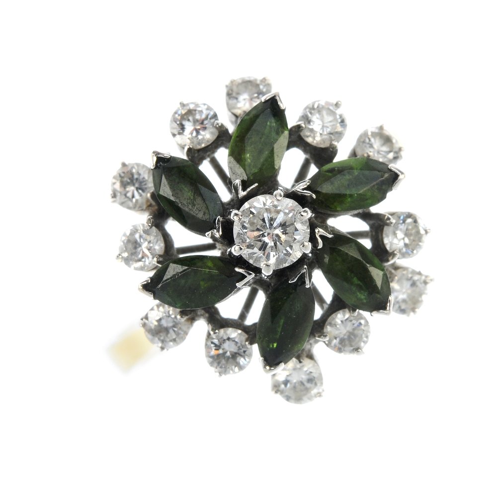 An 18ct gold diamond and gem-set cluster ring.