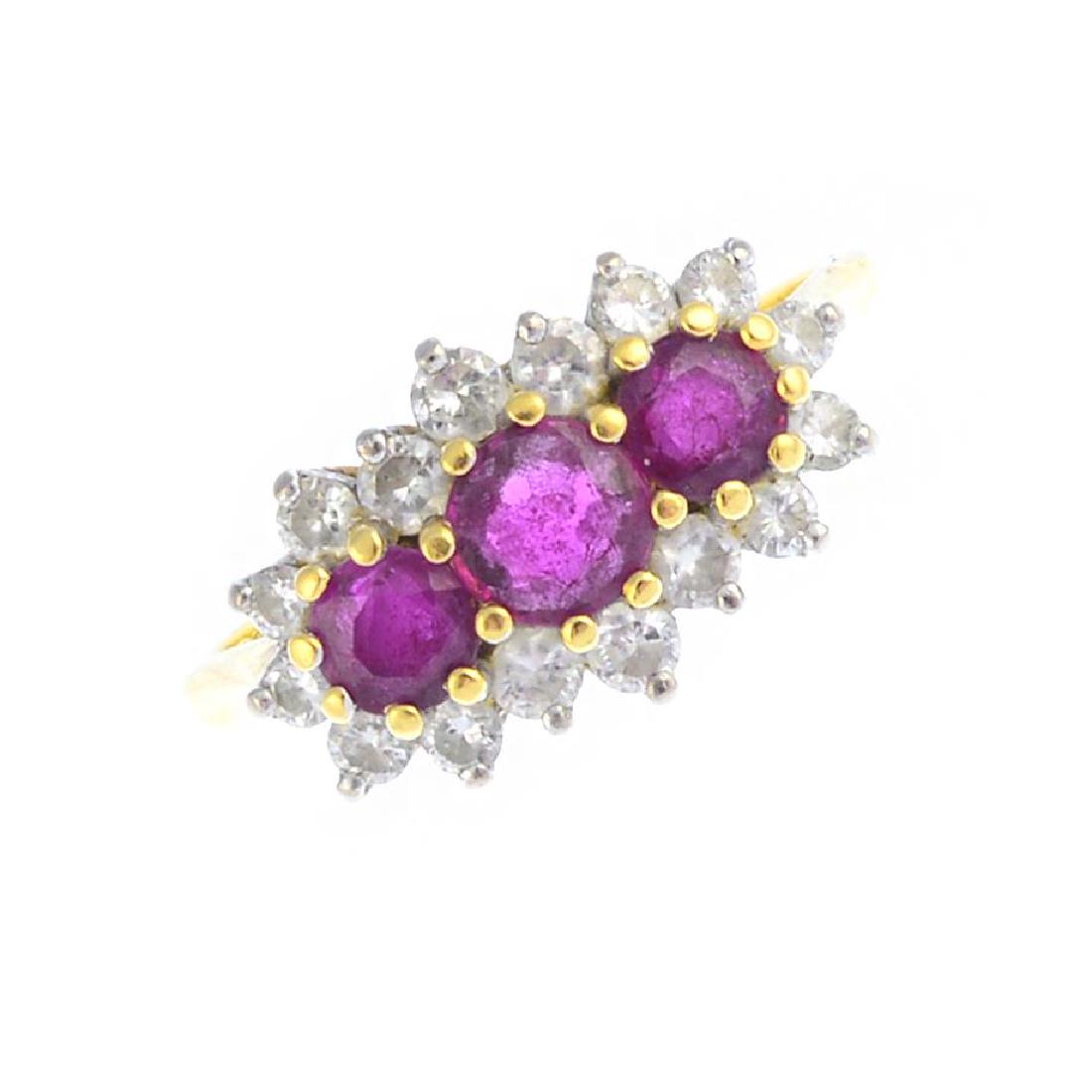 An 18ct gold diamond and ruby dress ring. Designed as a