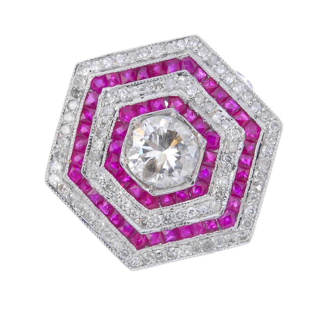 An 18ct gold diamond and ruby ring.