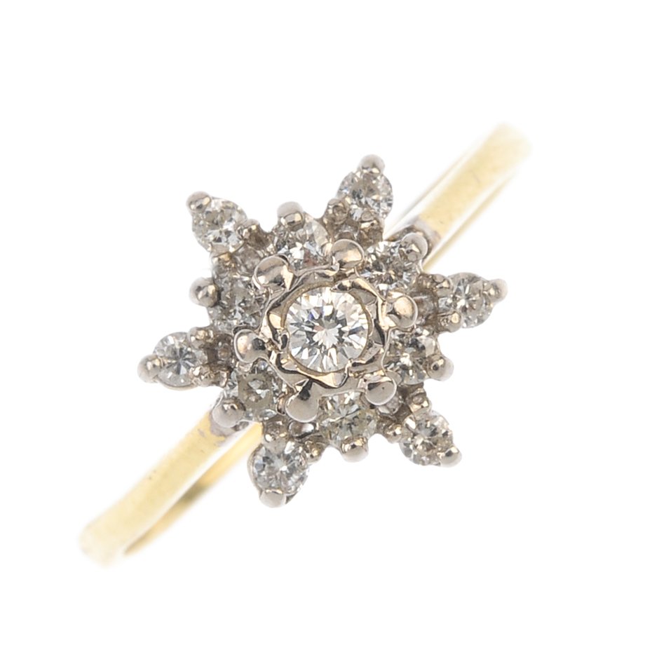 An 18ct Gold Diamond Cluster Ring. Designed As A Star,