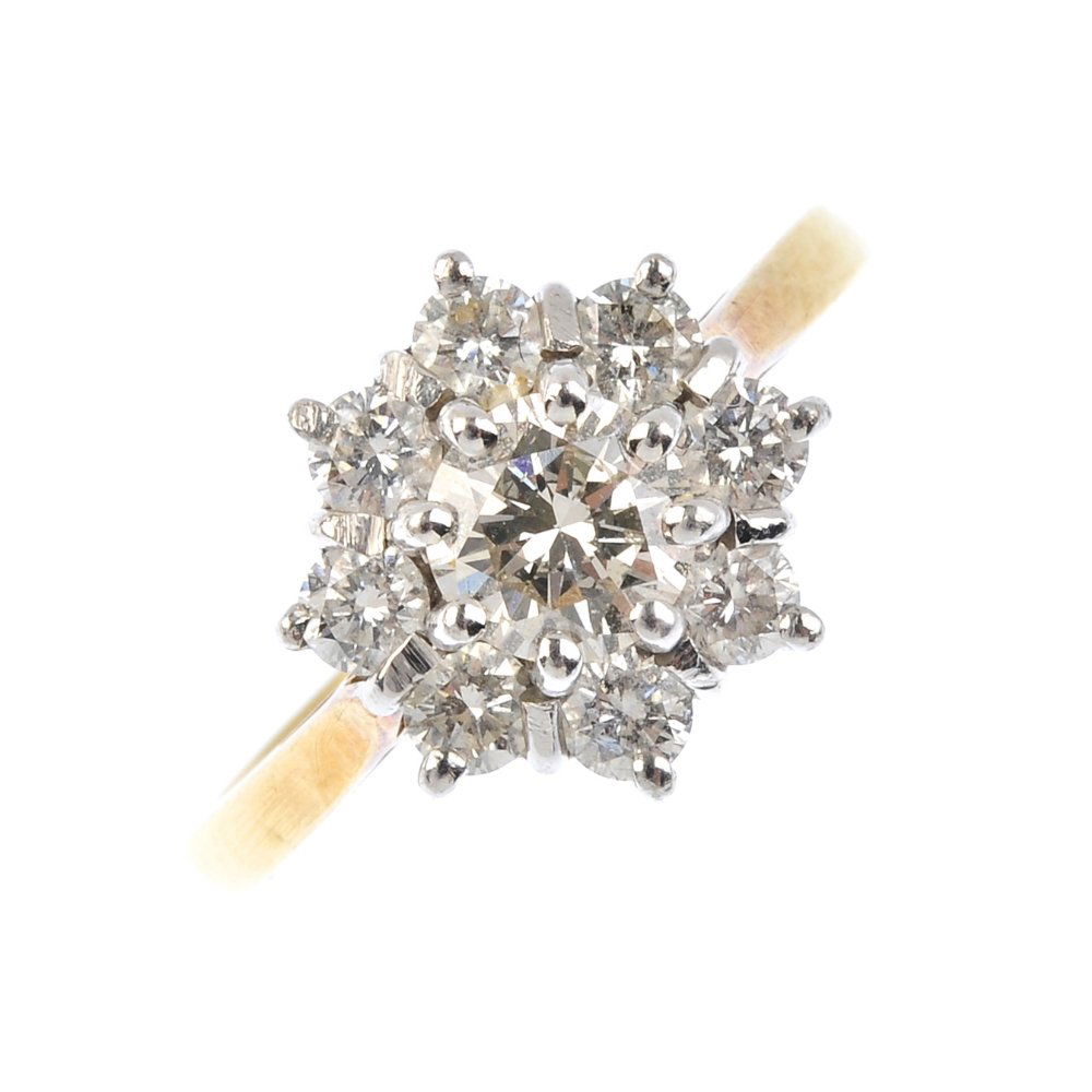 An 18ct gold diamond cluster ring. Designed as a