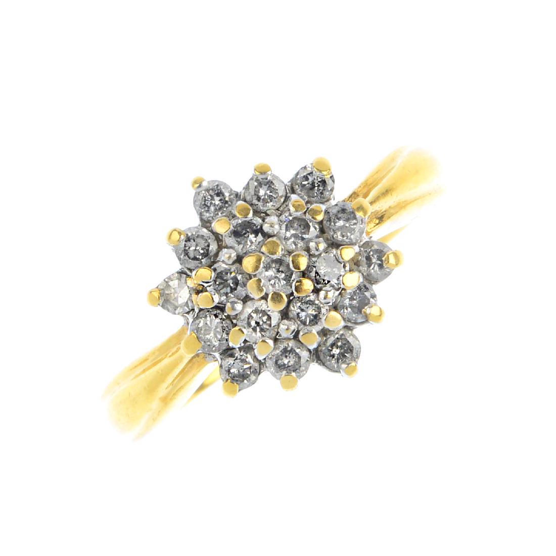 An 18ct gold diamond cluster ring. The circular-cut
