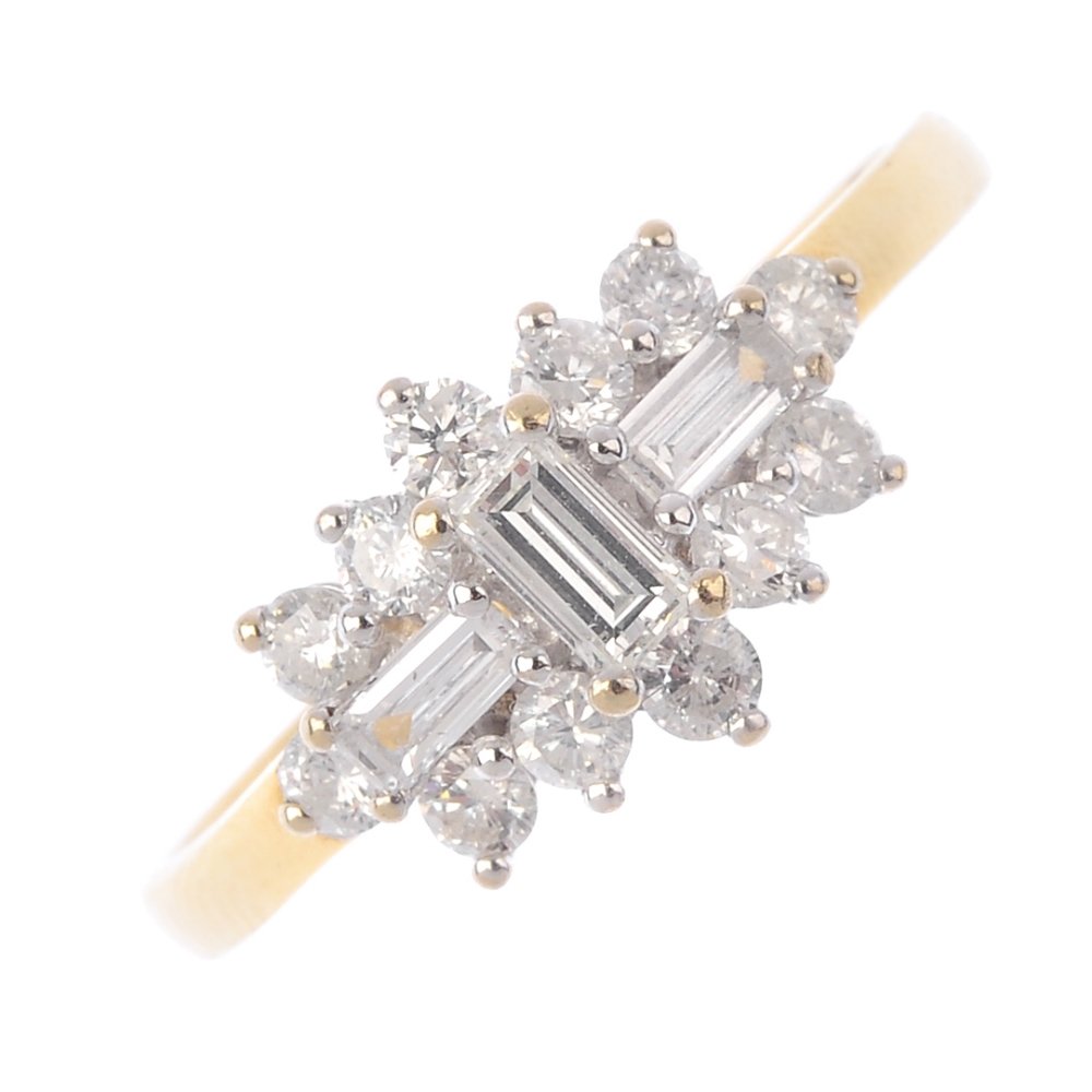 An 18ct gold diamond cluster ring. The rectangular-cut