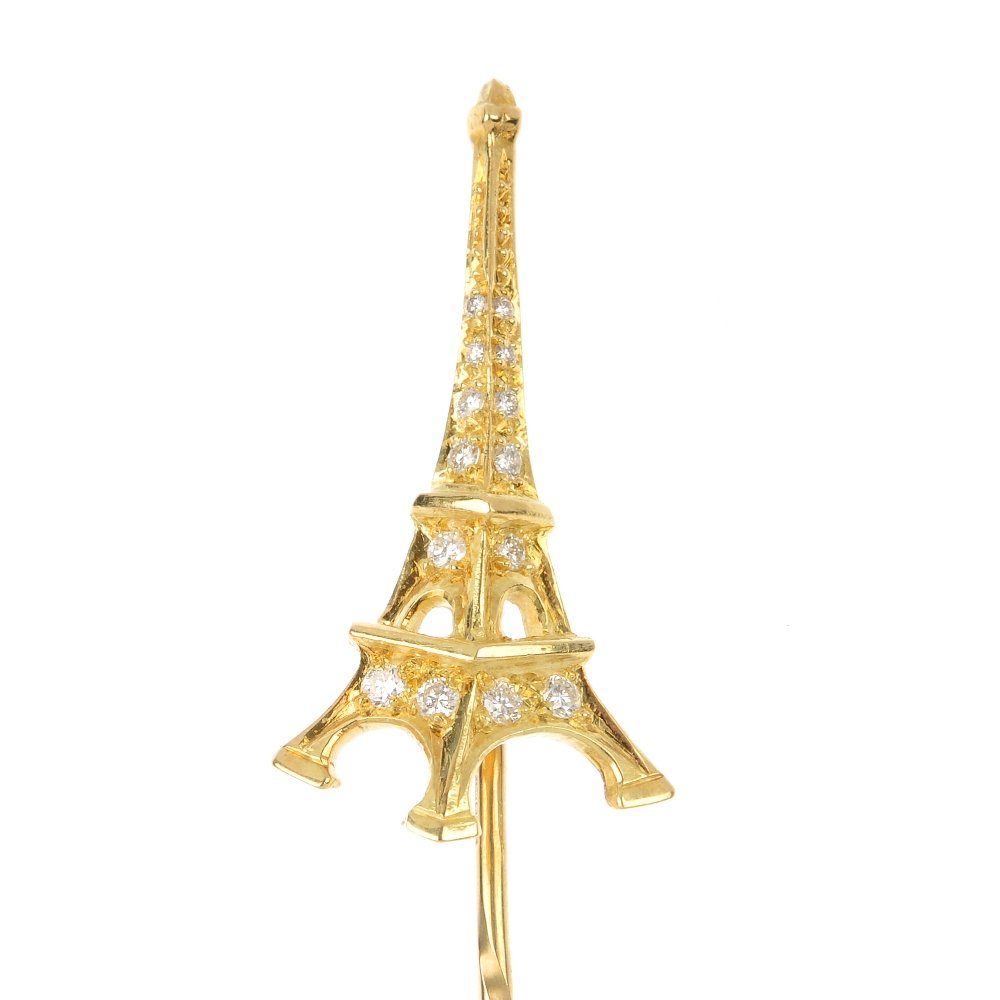 An 18ct gold diamond Eiffel Tower stickpin.