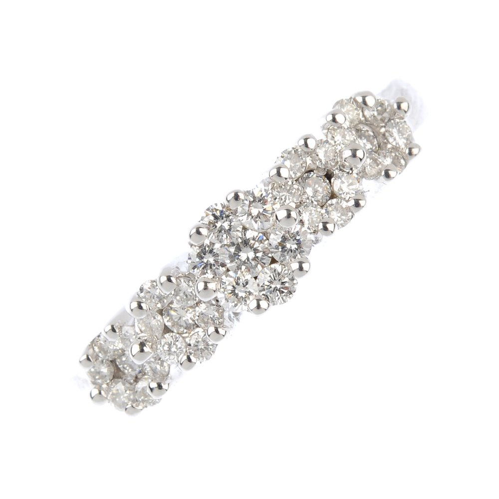 An 18ct gold diamond five cluster ring. Comprising five